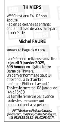 Décédé à Périgueux (24000, France) le mardi 7 janvier 2025 à l'âge de 83 ans